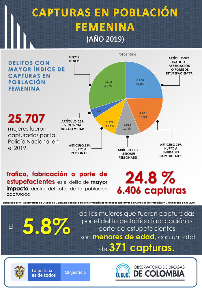 El Observatorio de Drogas de Colombia presenta la siguiente información que profundiza en la situación de las mujeres en las fases del narcotráfico, con el fin de generar conocimiento que aporte a implementar la política de drogas del país.